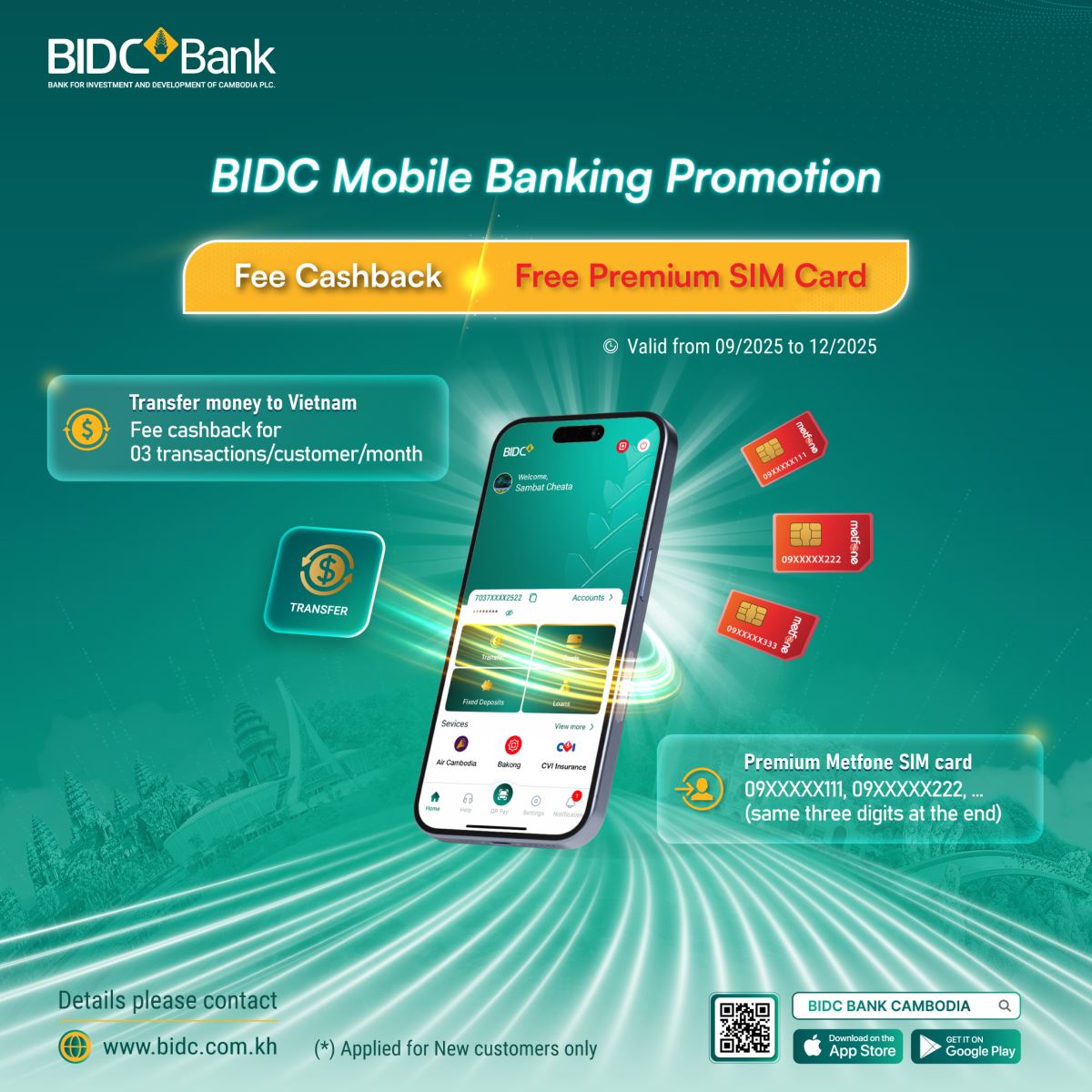 New customers who register for BIDC Mobile Banking will receive a free premium Metfone SIM with special numbers.